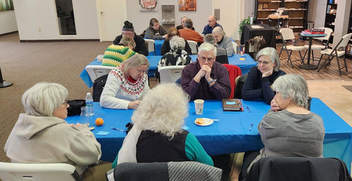 We gather once a month during weekday hours, currently on Mondays and Tuesdays.